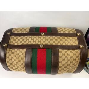 Gucci Sherry Line GG Duffle Medium Brown Leather/PVC Vintage