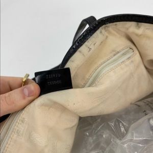 Item shows signs of wear from normal use: general wear of exterior, some scuffing of hardware, interior lining is discolored along top piping and also has small stains throughout. Please see photos for further details.
