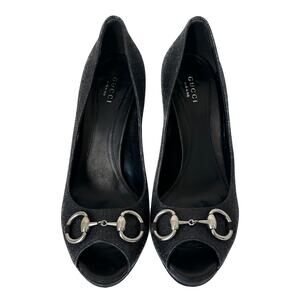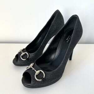 Gucci Shimmer Stardust Horsebit Peep Toe Pumps IT 38