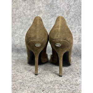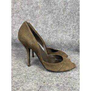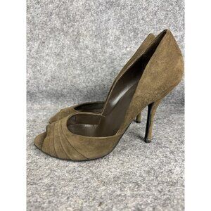 Gucci Shoes Womens Size 7 Brown Suede Peep Toe Stiletto Pumps Made in Italy