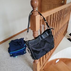 Elegant black shoulder bag perfect for any occasion. Features a sleek design with a convenient front pocket.