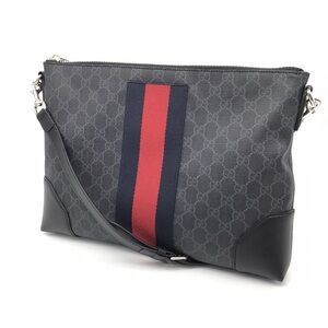 Gucci Shoulder Bag Black Green Red Ophidia Leather Web Stripe GG Dome
