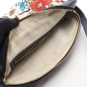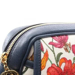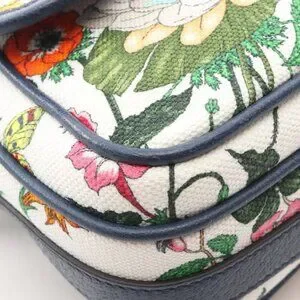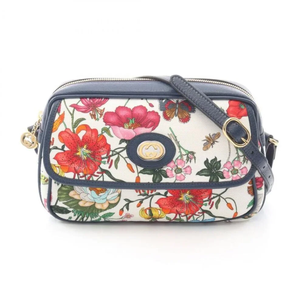 Gucci Shoulder Bag Flora White Navy Multi Floral Print Canvas Leather GG White