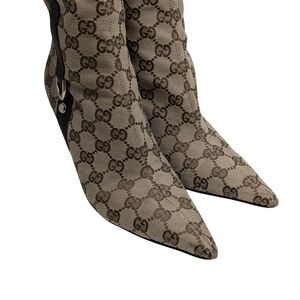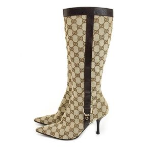 Gucci Signature Abbey Knee High Vintage Monogram Tall Heeled Boots Size EU 38