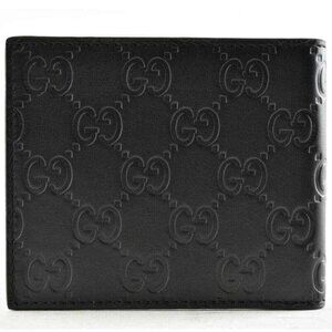 Gucci Signature Black Leather Monogram GG Logo Credit Card Holder Bifold Wallet