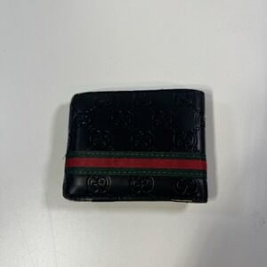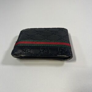 The Gucci Signature Web Bi-fold Leather Wallet in black is a luxurious and stylish accessory for men. Made from high-quality leather with a quilted design, it features the iconic Gucci logo and is perfect for storing credit cards and cash. The wallet is designed with a solid black color and a folding style, making it a practical yet fashionable addition to any man's wardrobe. It also comes with the original box for safekeeping and gifting.