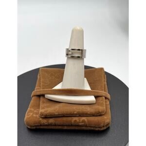 Gucci Signee Designer Sterling Silver Logo G cutout Ribbed Thick Ring Sz 5.75