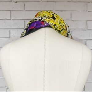 This stunning scarf is 100% silk and features a beautiful combination of bright colorful flowers on a black background. New with tags, box not included.