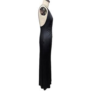 Upgrade your evening wear with this rare, limited edition Tom Ford for Gucci Silk Evening Gown. Designed with a plunging neckline, low cut back, and spaghetti straps, this iconic piece is crafted with a black silk-like stretch material and adorned with a patent leather accent. Don't miss out on adding this slinky, lightweight collector's piece to your wardrobe.