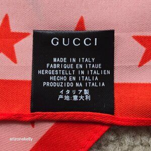 Vibrant silk scarf from Gucci in excellent condition. Please note a small run in the last picture.
