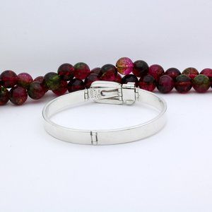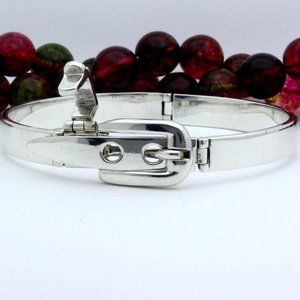 Rare ladies classic Sterling Silver .925 Gucci belt buckle bracelet, very well taken care, exquisite beauty in pristine condition. This beautiful pre-owned bracelet has an adjustable feature to fit average to fuller sized wrists. Gorgeous polished bangle design for a flawless finish to any outfit day or night.