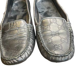 Gucci Silver Embossed Logo Driving Moccasin Size 7 These shoes have a lot of life to live! Most of the wear is on the heels/soles. See images