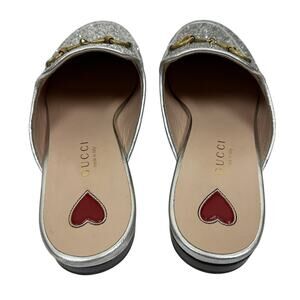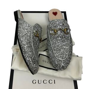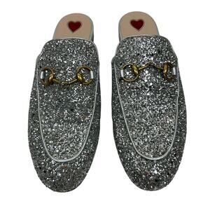 Gucci Silver Glitter Princeton Horsebit Slide Mule Loafers 5.5