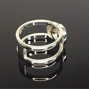 This exquisite Gucci ring showcases the iconic interlocking GG logo in a sleek silver finish. Crafted with a modern double-band design, it exudes elegance and sophistication. The polished sheen and minimalist style make it a standout piece in any jewelry collection. Size 6,5. Excellent condition
