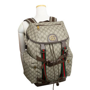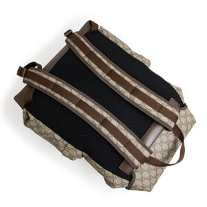 Gucci Skateboard Backpack Daypack GG Supreme Canvas Leather Beige Brown