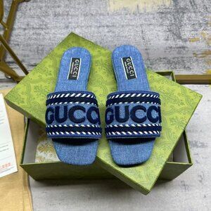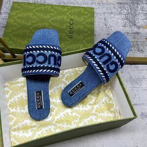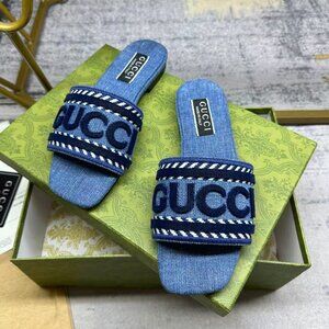 Stylish Gucci slide sandals in black. Features iconic logo design.