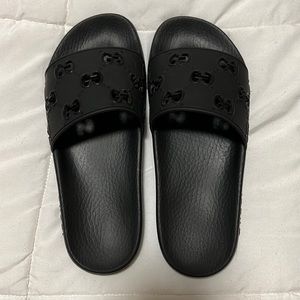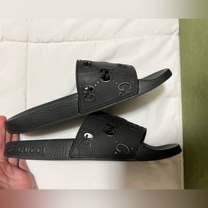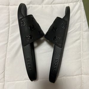 Gucci slides were worn only a handful of times. Minimal wear on the slides, a few marks on the inner shoe from rubbing together . Have the original box and dust bags. Lmk if you have any questions.