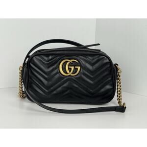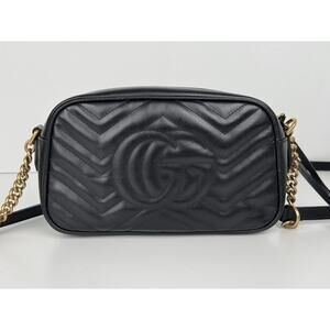 Gucci Small GG Marmont Matelasse Black Leather Chain Shoulder Bag