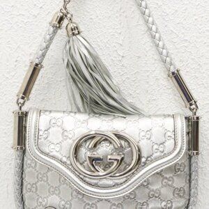 Gucci Small Signature Britt Tassel Shoulder Bag - Silver