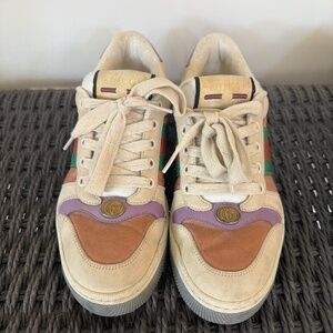 Elevate your sneaker game with the iconic Gucci WMNS GG Screener. Inspired by vintage athletic styles, these luxury sneakers feature the signature GG Supreme canvas with leather trim. The low-top silhouette is accented with Gucci’s signature Web stripe in green and orange, offering a timeless yet sporty vibe. Crafted in Italy with meticulous attention to detail, they combine comfort, durability, and high-fashion appeal—perfect for casual wear or statement street style.