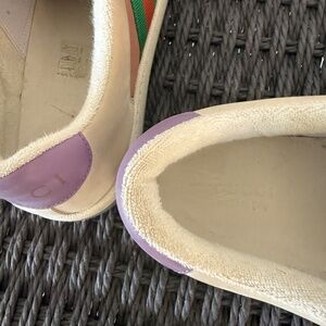 • Colorway: Beige/Ebony with green and orange Web stripe and Lilac leather details.