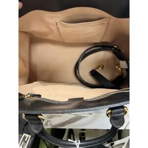 This elegant Gucci Soft Guccissima Signature Top Handle Tote Bag is perfect for everyday use or special occasions. Crafted from luxurious black leather with the iconic Guccissima pattern, it offers ample space and versatile carrying options. Despite minimal signs of wear and minor interior stains, this bag remains in excellent condition. Elevate your style with this timeless Gucci tote!