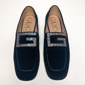 Gucci Softy Velvet Crystal G Flats EU 38 US 8 Black Moccasin GG Embellished