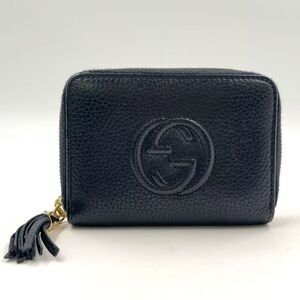Gucci Soho GG Round Zip Wallet Leather Black Gold