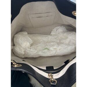 Gucci Soho Handbag Black Leather Tassel Double Chain Medium Shoulder Bag Purse