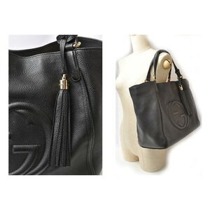 Gucci Soho Interlocking GG Tote Shoulder Bag Black Leather