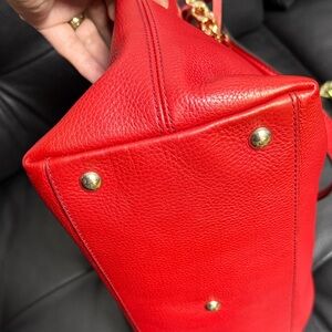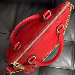 Chic red leather shoulder bag by Gucci. Features elegant generic gold chain and tassel detail. Perfect for any occasion. Excellent condition! 🌹