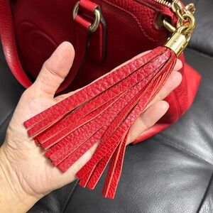 Gucci Soho Red Leather Shoulder Bag with Gold Chain and Leather Tassel