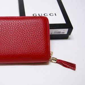 Gucci Soho Red Leather Zip Around Wallet Purse