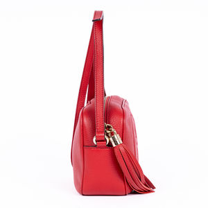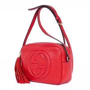 Gucci Shoulder Bag SohoTassel Camera Disco in Red Calfskin Leather and Gold hardware. The product is in Excellent Condition (A).