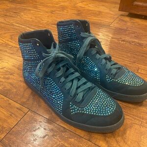 These Gucci sparkling teal high-top sneakers are perfect for adding a touch of glam to any outfit.