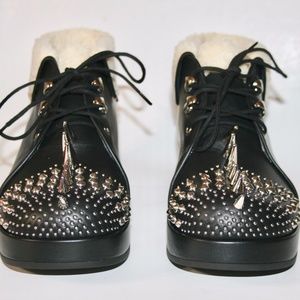 100% Authentic Gucci Lace up Spiked Studded Fur Booties Boots