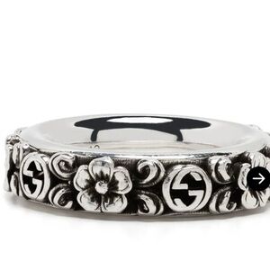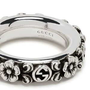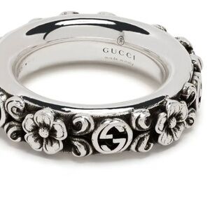 925 sterling silver signature Interlocking G logo engraved flower motif antique-effect hardware. Dust bag and box!