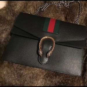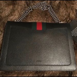 BRAND NEW!!! Gucci Stripe Handbag, blk leather w/silver and gold hardware..... THIS ITEM HAS BEEN SOLD!!!!!