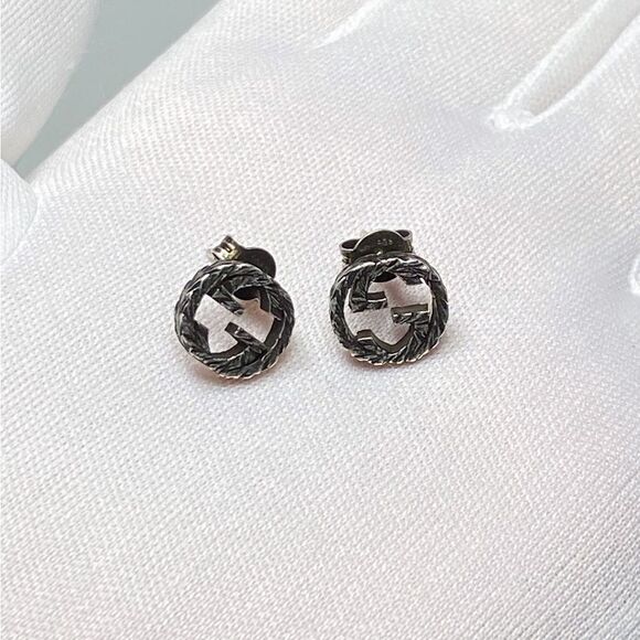 Gucci Stud Earrings With Interlocking G Motif in Aged Sterling Silver