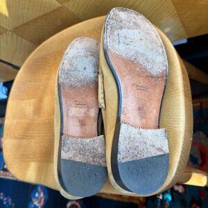 beautiful camel color suede loafers. the leather is in perfect condition, the soles are scratched from wear, but they are very solid and not falling apart at all. the softness of the leather is so worth it, so comfy.