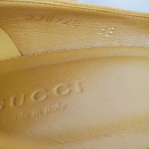 Gucci Suede Mustard Yellow Round Toe Pump Heels, Taylor Swift Favorite, Sz 8.5