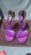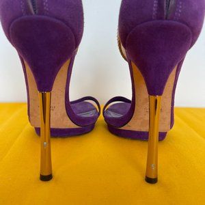 - Suede Purple Shoes with thin toe straps and Snakeskin/Python Gold Ankle Straps