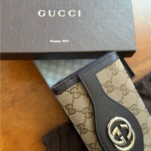 Elegant brown leather wallet by Gucci. Perfect for everyday use. Vintage