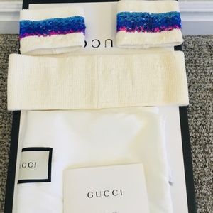 Allover sequins add not-so-subtle sparkle to a set of matching sweatbands that exude Gucci's brand of off-kilter cool.