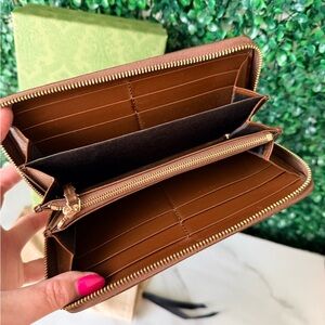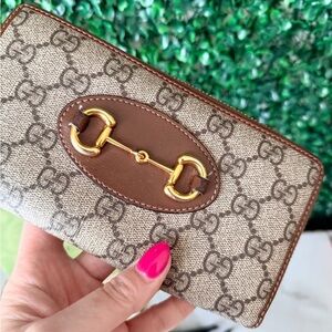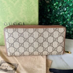 Gucci Supreme Monogram Canvas Horsebit Brown and Tan Women's Zippy Wallet