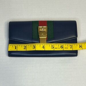 Gucci Sylvie Continental Wallet in blue calfskin leather.