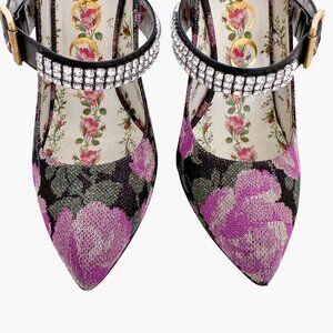 Gucci Sylvie Crystal Mary Jane Pump EU 36.5 US 6.5 Purple Floral High Heel