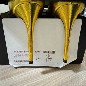 Beautiful pair of rare GOLD Gucci Sylvia Mary Jane Heels. There are many of the cream or black pairs out there, it is super rare to still find the gold ones as they are very unique and many are kept as collector items or worn and enjoyed.