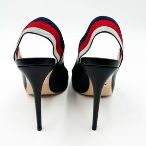 Gucci Sylvie Pumps Web Stripe Black Leather Slingback Heels Size 40, 10