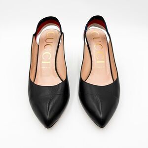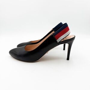Gucci Sylvie Pumps Web Stripe Black Leather Slingback Heels Size 40, 10